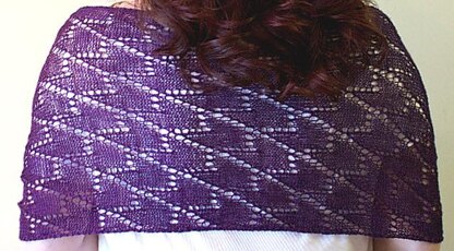 This rectangular reversible lace shawl is knit from end to end and the reversible lace pattern forms V-shapes that resemble knit stitches. Both the width and length can be varied to suit your needs. It is the third in a series of 3 lace shawls that are formed with reversible tessellations: Lace Revelations.