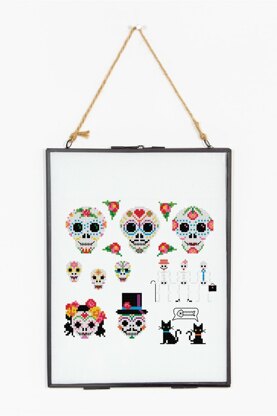 Get your sugar skull fix with this Mexican Day of the Dead free cross stitch design. Choose from a variety of bright, highly decorated skulls large and small, as well as cats and a skeleton troupe, to lend some fiesta spirit to a soft purse or personalised linens. For beginner cross stitchers, check out our guide on how to cross stitch!
