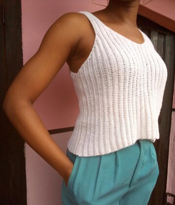 CONSTRUCTIONIt’s constructed side ways and made using BLO HDC in two identical panels with decreases and increases being used to shape the armhole for a natural fit. This tank can easily be adjusted to any length.