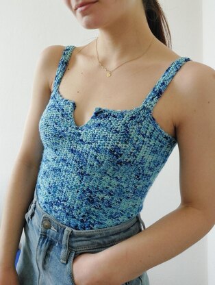 This top is a beautiful basic addition to your wardrobe. The texture is unique and beautiful and the fit is comfortable but very cute. Thanks to the front opening it is not boring and adds something interesting to your look. I love to pair it with mohair sleeve (another written pattern).