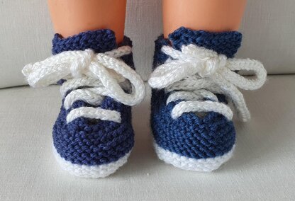 These fashionable and functional lace up sneakers are knitted in garter stitch and the laces are knitted using double-pointed needles.