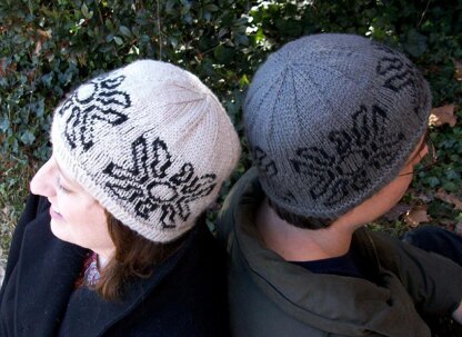Yarn: Example shown is in Knit Picks Capra [85% Merino; 15% Cashmere; 123 yards/50g], MC = 1 skein Caviar (Men’s) or Platinum (Women’s), CC = 1 skein Black