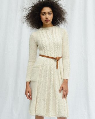 This beautiful, cable patterned dress has side pockets and long sleeves with a lovely loose floating skirt. Miko has an air of romance and grace about her as well as being just so warm and practical. The shape is very flattering as the eye is drawn to the central cable patterning and, let’s face it, who doesn’t love pockets!