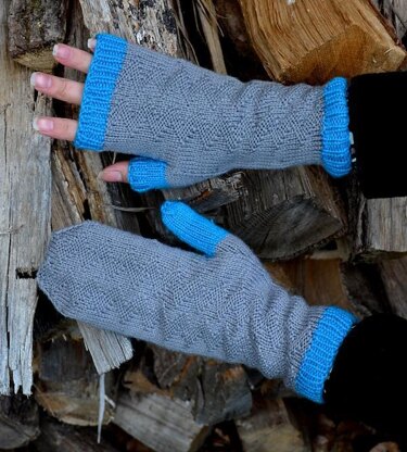 These mitts are worked from the top down; this way you can easily adapt the length to your needs. Special features are a zig-zag-style textured pattern and ribbed cuffs in a contrast color that brightens up the dull winter months. You can choose between the full mittens version or a fingerless mitts version – or knit both!