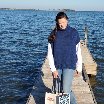 Milam is an oversized popover vest layer knitted in a chunky weight yarn. Beginning with a split ribbed hem, the vest is joined to work in the round with a cabled detail along the side “seams”. After reaching the underarm, the front is split from the back and worked back and forth in rows to the shoulders. The armhole edges are self-finishing.