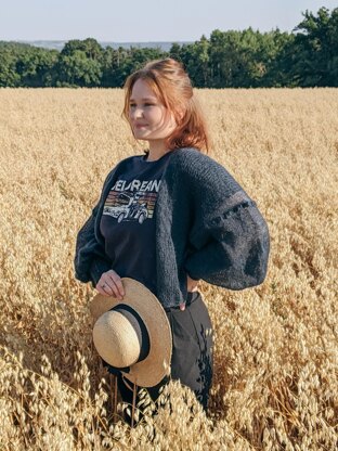 The Milia Cardigan is a cropped, oversized jacket that is worked from the bottom up. Captivating are of course the oversized bell sleeves, which lay loosely and fluffy against your skin. It has a straight cut and a little eye-catcher by a row of bobbles on the top of the sleeves. The instructions are suitable for advanced beginners.