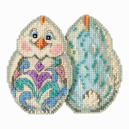 Finished design size: 2.5 x 3.5"(6.35 x 8.89 cm) This cute little chick design is an ideal project to make up for Easter or Springtime gift ! Your kit includes: Beads, White perf paper, needles, floss, chart and instructions. © Jim Shore