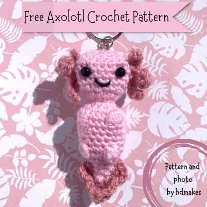 A cute keyring sized mini axolotl crochet pattern. This pattern shows you how to make a 5x9cm size axoltol but it can easily be sized up or down by chanigng the yarn weight and hook size.