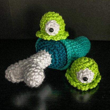 Required Skills: • Starting the round with an adjustable ring (“Magic Ring”) • Work in the round (continuous spirals) • Increases with single crochet • Decreases with single crochet • Backpost Single Crochet • Stitches: chain, slip stitch, single crochet • Stuff parts with filling • Sew openings close, sew parts together (join parts)