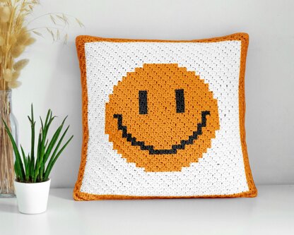 🙂 Smile Face Emoji Pillow Mini Corner-to-Corner (Mini C2C) Crochet Pattern