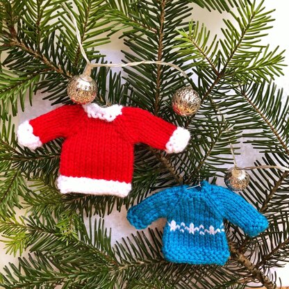 Knit in the round from the top down, these cozy jumpers would make a really cute garland or tree decoration. A method for making little hangers from a paperclip is also provided in the pattern.