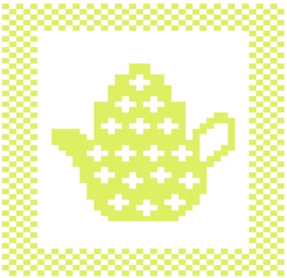 Hand-designed mini flowers teapot dishcloth pattern. All of my patterns are free-drawn and converted to a pattern on knitting graph paper. I never use knitting pattern creation software to design my patterns. One skein of sugar n cream yarn on size 4 (US) needles is used to create each dishcloth.