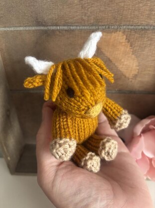 Learn to knit my super cute Mini Highland Cow toy. This pattern is knit flat on 2 needles and seamed together at the end. This is a really fun, quick and enjoyable project and your little cow will be the perfect gift (or just to keep for yourself ). Your cow will measure around 14cm tall once finished. This is great project for beginner level knitters as it uses simple stitches and knits up quickly.