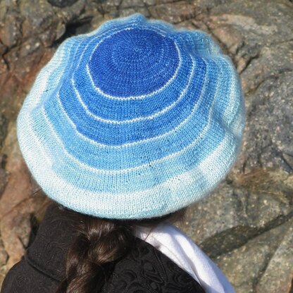 This hat is especially designed for gradient mini sets from A Hundred Ravens. If substituting yarns, you will need about 40 yards each of 7 different colors. Mini Martello comes in four sizes; in all cases, the top is worked the same, and the sizing is achieved by more/fewer decreases before the brim. (Sample is size M.)