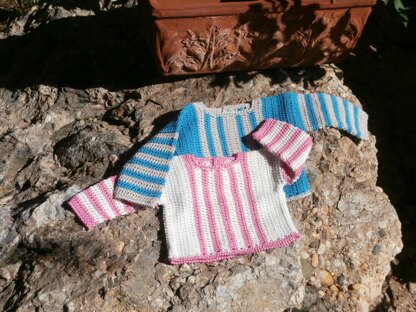 Samples made in Wendy Supreme Luxury cotton 4-ply: 1(1) ball [267 m/292 yds] 1837 Orchid or 1821 Mushroom [A], 1(1) ball 1851 Cream or 1836 Dragonfly [B]; using 3.5 mm [US E/4] crochet hook; and requiring 5(5) small buttons.