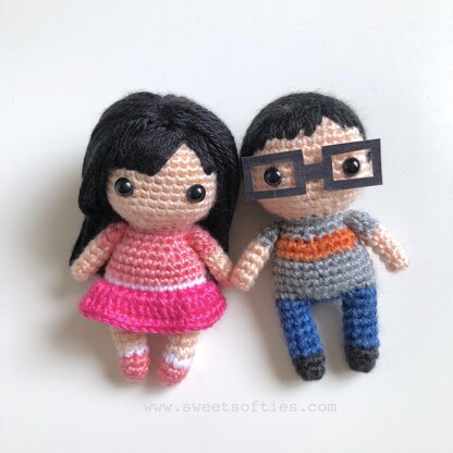 The Mini Me Dolls Pattern provides written instructions with photo references for a pair of adorable, little boy and girl dolls! Each doll is quick to work up and can easily be customized to look like you by using different yarn colors, hair attachment methods, accessories, and embellishments!