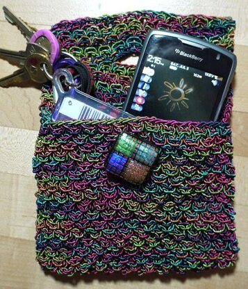This little bag is knit in one piece using one skein (54 yards) of Noro Daria and embellished with a 1” button. As the name implies, I designed it to take with me to meetings when I didn't want to carry a large purse.