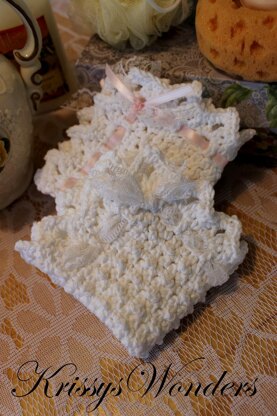 This washcloth is part of a collection that has two other vintage inspired washcloths, and two baskets. One with a drop over lace edge, and a square basket.