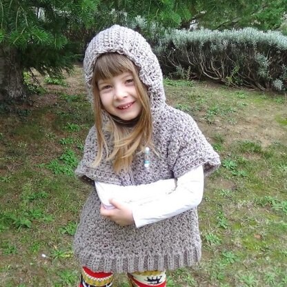 I had in mind to design something for little ones and big ones as it is a joy to share... even outfits! It would be nice to crochet this for a mother and her daughter, a grandmother and her granddaughter, and an aunt and her niece. Soft and cozy hoodie pullover, it is perfect for chilly days outside or lounging around the house. A hooded pullover with short sleeves made of a fine yarn, slightly oversized, it will surround your child with warmth and comfy! The hood drawstrings will keep the hood snug on the head.