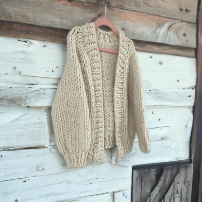 A fast satisfying knit with maximum coziness! Mini Rumi cardigan is designed for comfort, warmth and everyday wear. The clean lines, oversize fit and simple shaping lets your favorite bulky yarn shine. Perfect for everyday wear during colder months.