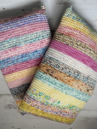 A 4ply mini skein cushion cover design. A fantastic way to use up leftover yarn. Worked in the round. Measures approximately 20 by 12 inches. I used 15 x 10g mini skeins of 4ply sock yarn.