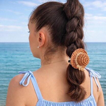 With this pattern you will create a charming mini crochet sun hat made of raffia or cotton yarn. This tiny beach-style hat is perfect as a keychain, bag charm, doll accessory, scrapbook decoration or crochet ornament.
