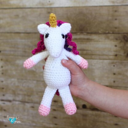 This little unicorn measures about 5.5 inches tall when sitting, or about 7.5 inches when the legs are extended. This is great size for a small cuddling or playing buddy for tiny hands and also perfect for traveling in the car or stroller.