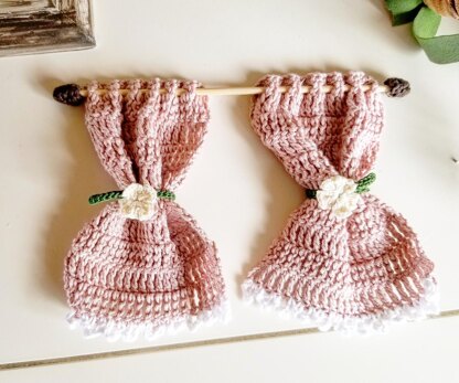 Dress up your doll house with this easy to follow pattern for miniature doll house curtains measuring 4x6 inches in size.