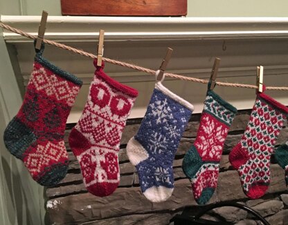 Welcome to the world of miniature stockings. This is the first set in a ongoing series of miniature stocking patterns. Each set of patterns will include five (5) stockings. I have incorporated the colors and shapes that many of us associate with the Christmas holidays. There are many options on how to display these - strung in front of the fireplace, hang on a tree or on a wreath.