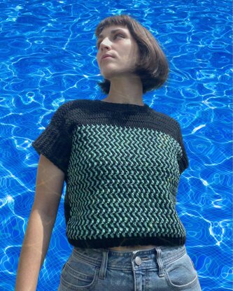 The Minimal Wave T was inspired by lo-fi minimal wave music. The waves are made using a simple pattern of double crochet stitches, so it's perfect for any beginner. The pattern calls for using two strands of Paintbox Cotton DK Weight 3 yarn held together, but as long as you can achieve the gauge, you can use a Weight 4 Aran yarn single stranded.
