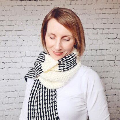 Go back to basics with this minimalist, monochrome crochet scarf. It features a one row repeat so it’s a perfect crochet pattern for beginners. And how cool is the vertical stripe effect that requires NO mid-row color changes!?