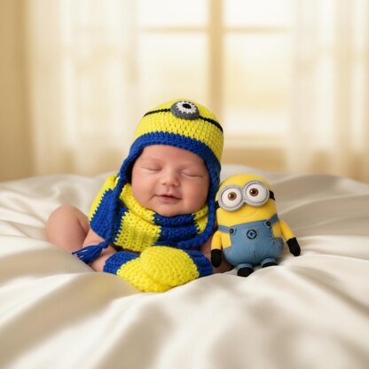 Super easy fun, cute baby Minion Set. Scarf, hat and mittens. Great little present to make for the colder time of year, or a great seller at craft fairs or online shops. This patterns is so basic that you can alter it to make any size you would like. Takes very little yarn, and can be made in an afternoon.