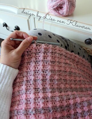 This pattern introduces a fun, new crochet stitch called a “cast on bobble”. Pattern includes instructions to work the blanket in 2 colors also (2nd photo).