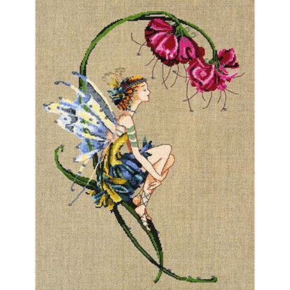 Design Note from Mirabilia: "Please, use a blend of DMC floss numbers 746 and 950 for the uppercase A symbol at the base of the fairy's wings."
