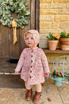 The Misha Cardigan was an absolute joy to design. I have had my eye on the gorgeous lace pattern for a long time now and am so happy to see it in this stunning cardigan. Please don’t be intimidated by the way it looks! The lace is made up of single and double crochet stitches plus chains. That is it! The best part is I have filmed a row by row tutorial on how to stitch it to go along with the written instructions. The cardigan starts off with a circular yoke and a sweet puff stitch motif. After the sleeves are separated, you will do one increase row and then start on the lace motif. The sleeves are added directly onto the cardigan and finished off with a sweet shell stitch edging. Wear the Misha Cardigan with jeans, overtop of some cute bloomer bottoms, or with a fancy dress. The timeless design will be an heirloom for years to come. Make sure you check out the matching Misha Bonnet.