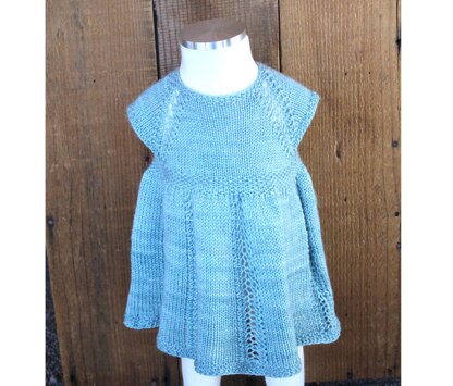 Miss Bunty has a vintage feel to it, and will become an heirloom piece to be handed down from baby to baby. Top down construction, buttoned back, with lace and a full princess skirt. This is designed with positive ease, so there will be lots of room to grow into a tunic.