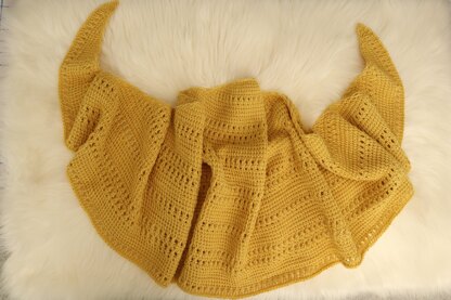 Missing Holiday Sun Shawl is a crescent shaped Tunisian crochet shawl combining traditional looking Tunisian simple stitch with rows of lace. It is constructed top down and uses 200 g of sport weight yarn that is light enough for spring and summer but still gives a bit of warmth, which lends it to be a great layering option for chillier evenings and long walks outside.
