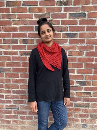 Mission street shawl is a simple asymmetric triangular shawl with a pronounced geometric texture. It would become a chic accessory in your wardrobe, whether you choose to make it in a subdued neutral or a bright solid color. The grid-like texture of the shawl is also reminiscent of the neat grids of streets you find in Pondicherry. :-)