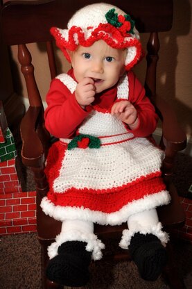This pattern includes the apron and hat ONLY. Pair it with the Missy Claus Skirt & Headband for a cute holiday photo shoot. You can buy the ebook with both patterns at a discount.