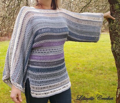 A classically shaped lacy kimono tunic, an easy to customize garment and flattering for all shapes. Mists in Spring is meant to be worn over a simple tank during warmer days but can also be worn over a long-sleeve top when the air becomes chilly.
