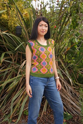 The vest is a scoop neck garment designed for wearing over a shirt, dress or top with short/long sleeves.