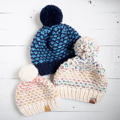 Use a simple seed stitch variation to add color and complexity for a fun winter hat!
