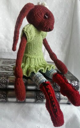 Miyu is a lovely rag-doll in the form of a mystical and rather pretty hare. Named after the Japanese meaning for 'beautiful moon'.. Soft, floppy, but not too floppy, she is cosy to cuddle, the perfect size for small hands and will sit or lay flat. Pattern includes dress and tiny flower.