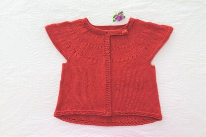This seamless girl’s cardigan is made top down with integrated neck and button bands. When the knitting is finished just weave in the ends and sew on the buttons.