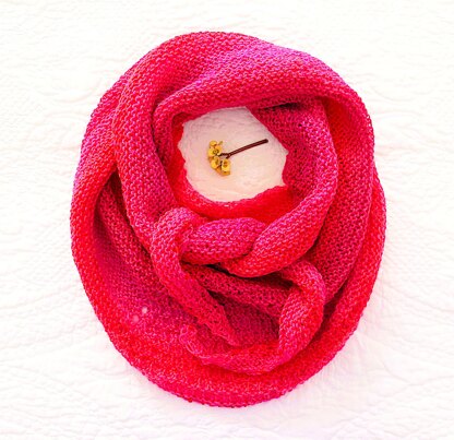 This crescent shaped scarf drapes beautifully, looks the same on both sides – front & back, left & right - can be worn in all sorts of ways & is quick to knit because the pattern uses needles larger than is standard for the yarn. Most of the rows are just knits, with the loopy increases on every row, but aside from the first 3 rows, the centre section repeatedly has 2 rows of knits, then two rows with knits and purls. Casting off with beads is an option.