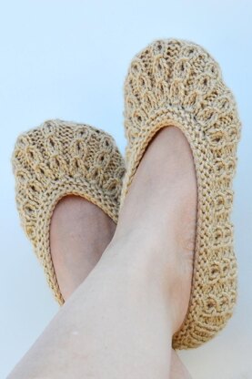 MOCK CABLES ADULT SLIPPERS The pattern is a quick knit pattern and includes two methods. The first one is simple flat knitting and sewing the sole. The second one is knitting in the round method and less seaming. These soft slippers are perfect for keeping cozy around the house and look stylish. They are sure to make your feet warm and comfortable.