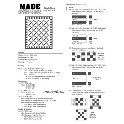 Moda Fabrics Simple Chain 2 Quilt - Downloadable PDF is a free Intermediate Quilting pattern by Moda Fabrics, available as a Downloadable PDF and includes instructions in English. Super fun to make, this pattern could be your next masterpiece!