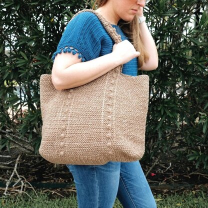 The Modbob Tote is an oversized and modern tote design that can serve many many purposes—farmers market, craft tote, carry-on/travel, diaper bag, purse, beach bag, and more. The surface crochet details that wrap around the entire tote and along the straps and handle add an additional visual touch while also providing reinforced structural sturdiness and stabilization. The optional pocket is perfect for easy access cell phone storage.