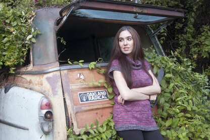 I am usually all about the negative ease shaped sweaters, but my sister wears oversized drapey sweaters and looks amazing in them. I wanted to make something in her style and colors, so I went with an oversized cowl necked tunic with some crazy bright stripes. This is probably the easiest sweater you’ll ever knit. It’s just a big rectangle, and even though I used a fingering weight yarn, the oversized needles ensure that it knits up fast with lots of drape. The result is a lovely, lightweight sweater for all occasions!
