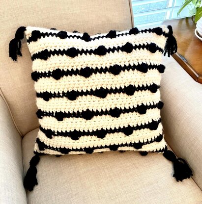 A mix of basic stitches and bobble stitches add some texture and design to this gorgeous pillow. A fun repeating pattern makes this a joy to crochet.
